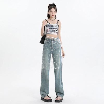 デニムかっこいいスラックスパンツ25の新作デニムパンツ レディース ワイドレッグ 見えやせ ハイウエストゆったり 垂れ感 ファッション