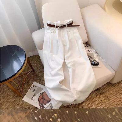 カーキ カラー カジュアル パンツ レディース デニム パンツ 新作 ハイウエスト 痩せ見え ゆったり ワイドレッグ ストレート ロングパンツ
