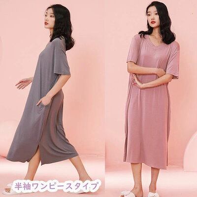 ブラカップ付き ゆるリラ パジャマ 半袖 長袖 ワンピース ウェア 涼しい レディース 薄手 ゆったり 大きいサイズ Tシャツ 七分丈パンツ 長袖パンツ