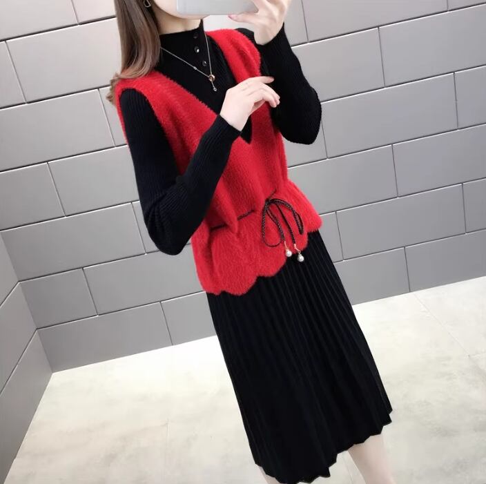 2024年秋冬新作 レディース服 ワンピース ハイネック ベスト お出かけ セットアップ 5色展開