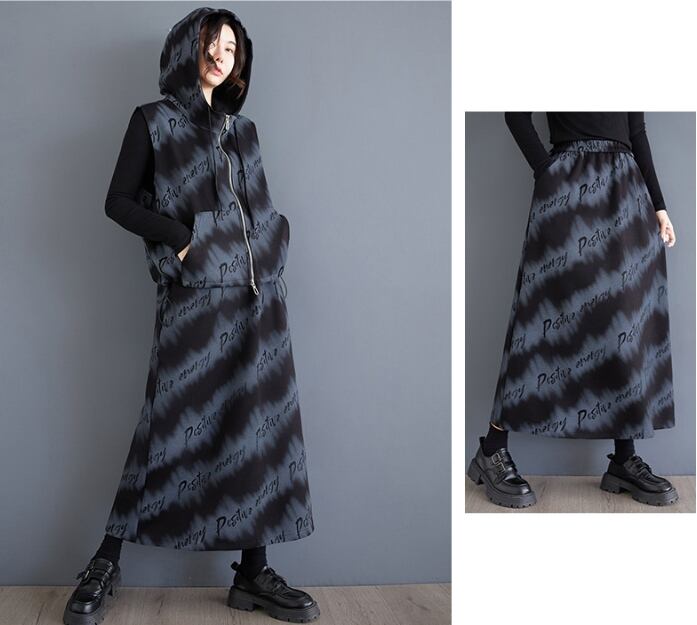 2024年秋冬新作 レディース服 トップス ベスト お出かけ フード付き ロングスカート セットアップ