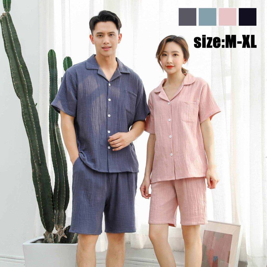 パジャマ カップルペアルック メンズ レディース 夏 セットアップ 前開き Vネックス 半ズボン