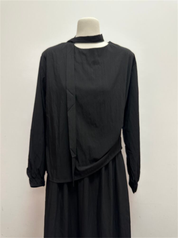 簡単おしゃれに見える服 激安セール 2025早秋 ロングスカートと長袖シャツの丸首コーディネート