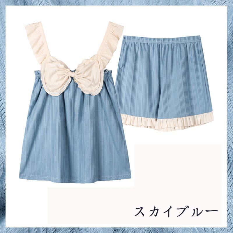 パジャマ レディース 夏 2点セット セットアップ ルームウェア キャミソール 半ズボン ノースリーブ