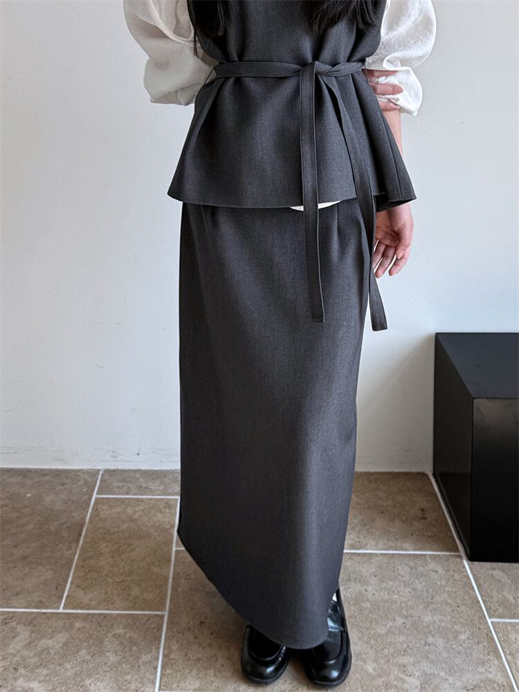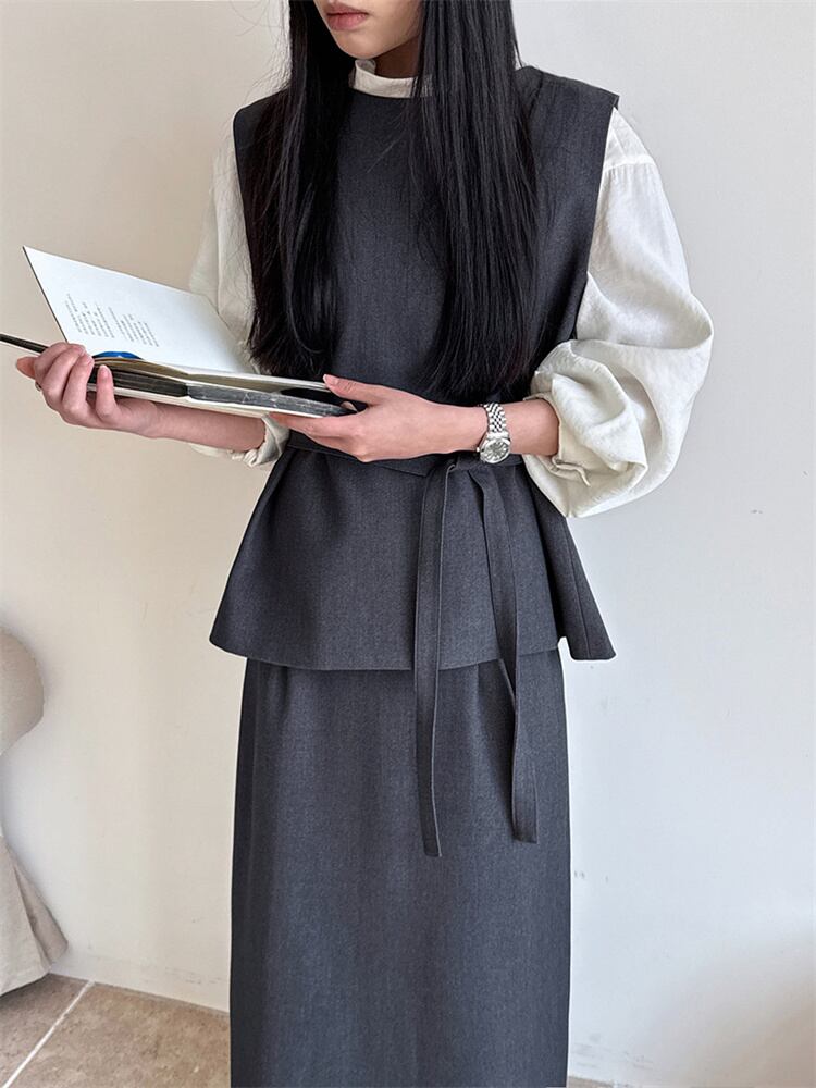 無袖トップスとロングスカートの組み合わせ 秋向け