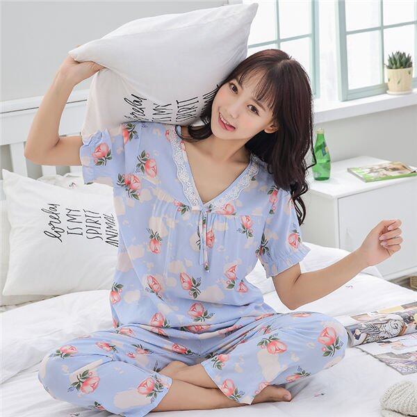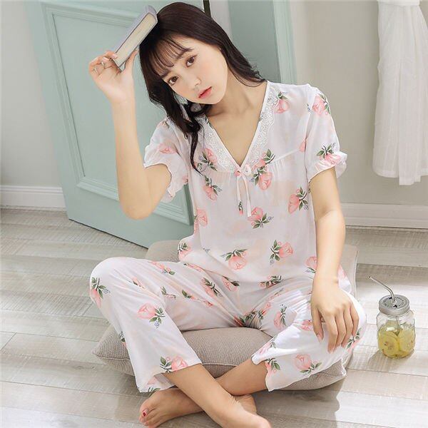 パジャマ レディース 上下セット 前開き 半袖 ロングズボン ルームウェア セットアップ ナイトウェア