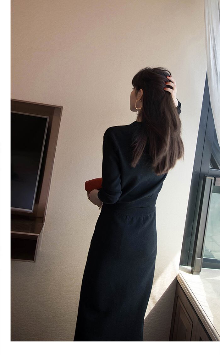 カーディガンとスカートがセットになったあぜ編みニットのセットアップが登場