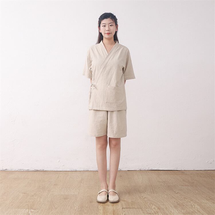 ファッション祭り特価中 カップル向けVネックTシャツ&短パンセット アマ製5色展開 吸水快適