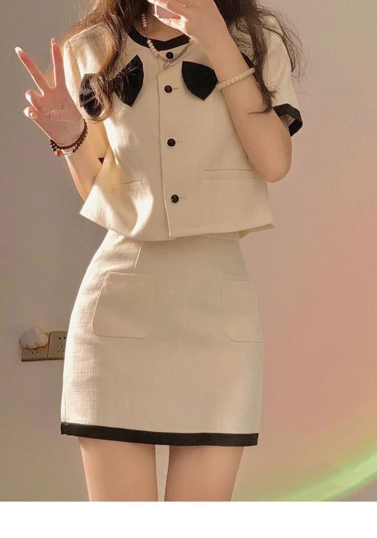 2024新作 レディース 上下セット セットアップ 2ピース ジャケット ミニスカート ベージュ リボン