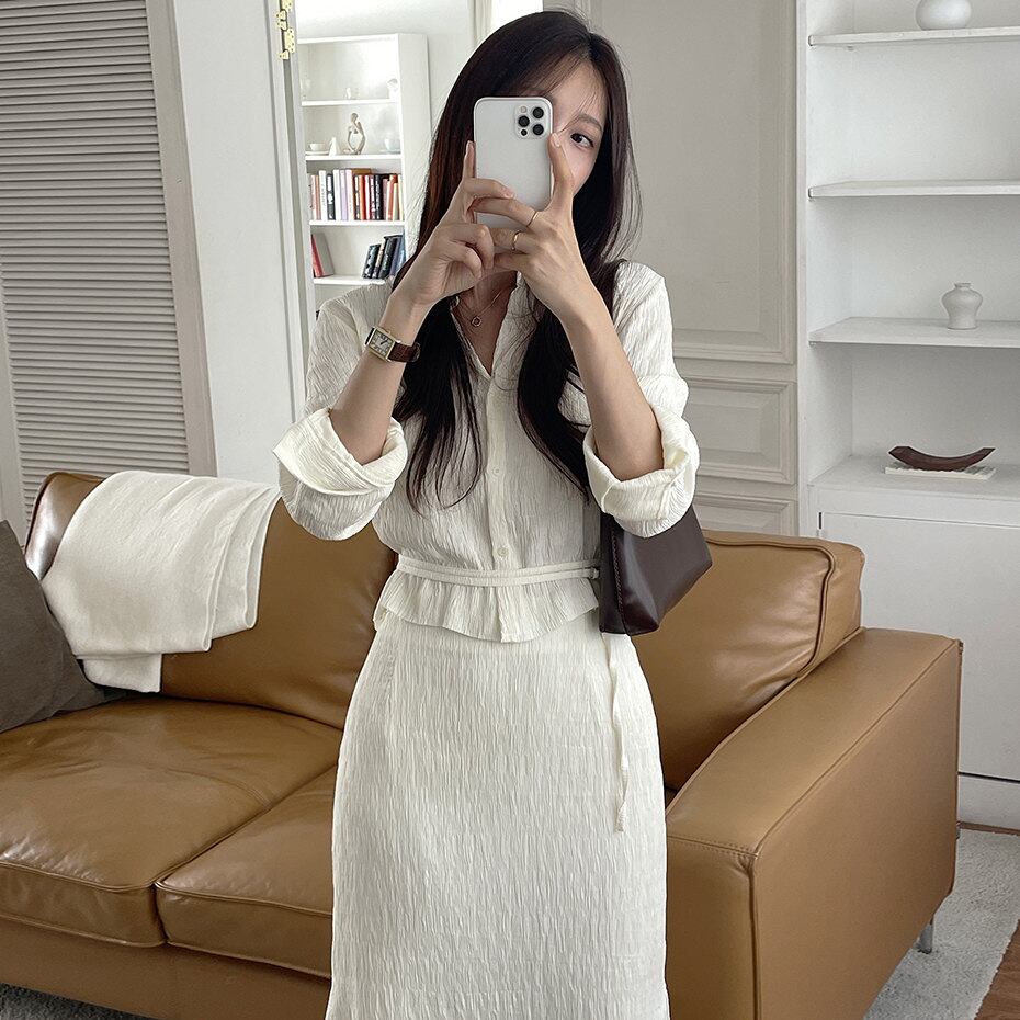 2026年INS 春新作 気質 おしゃれ 韓国風 シャツ +ハイウエスト ミニスカート