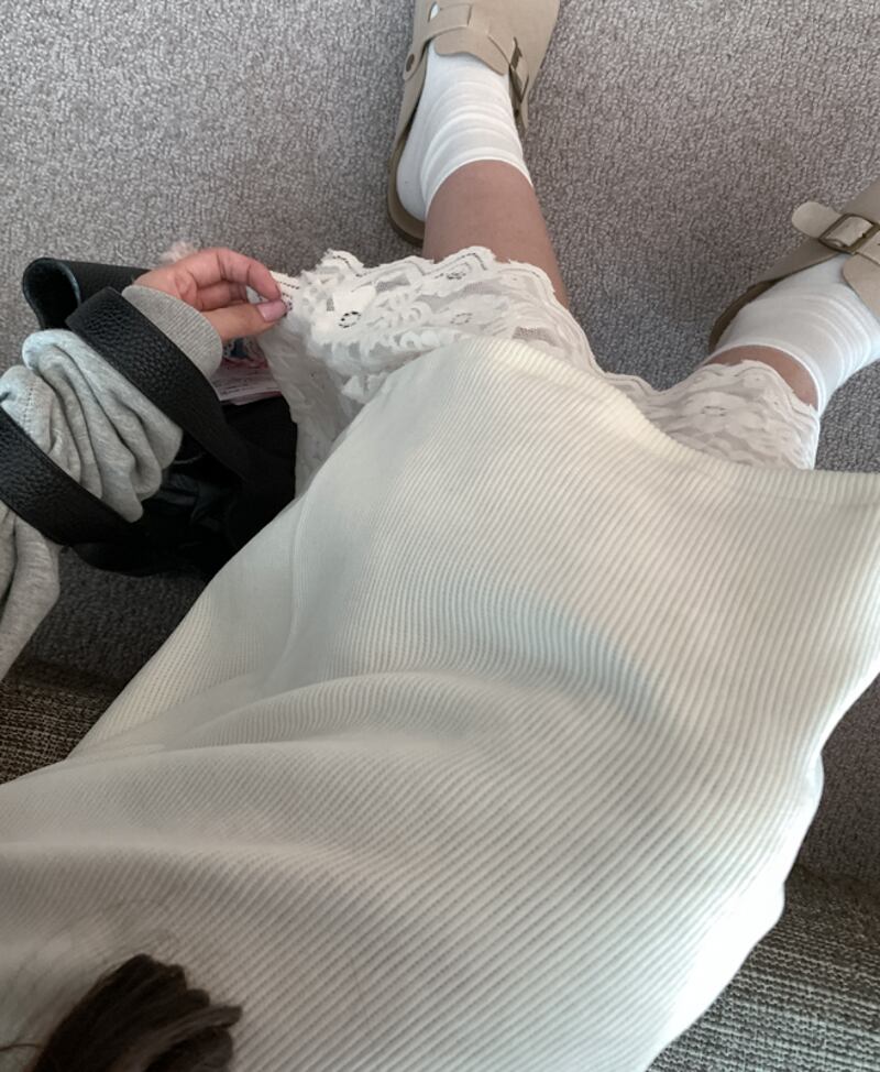 2023秋INS新作★気質 魅力的 可愛い レース飾り透かし彫り セミロングスカート