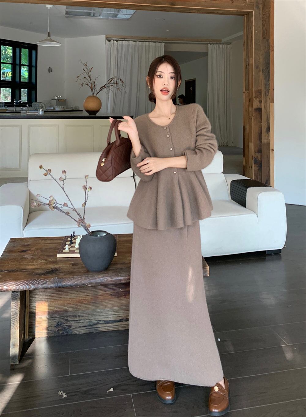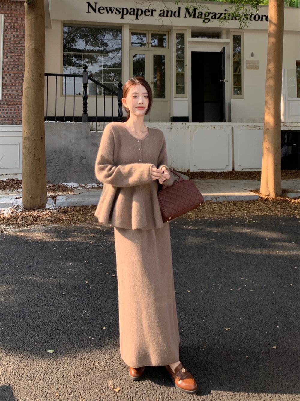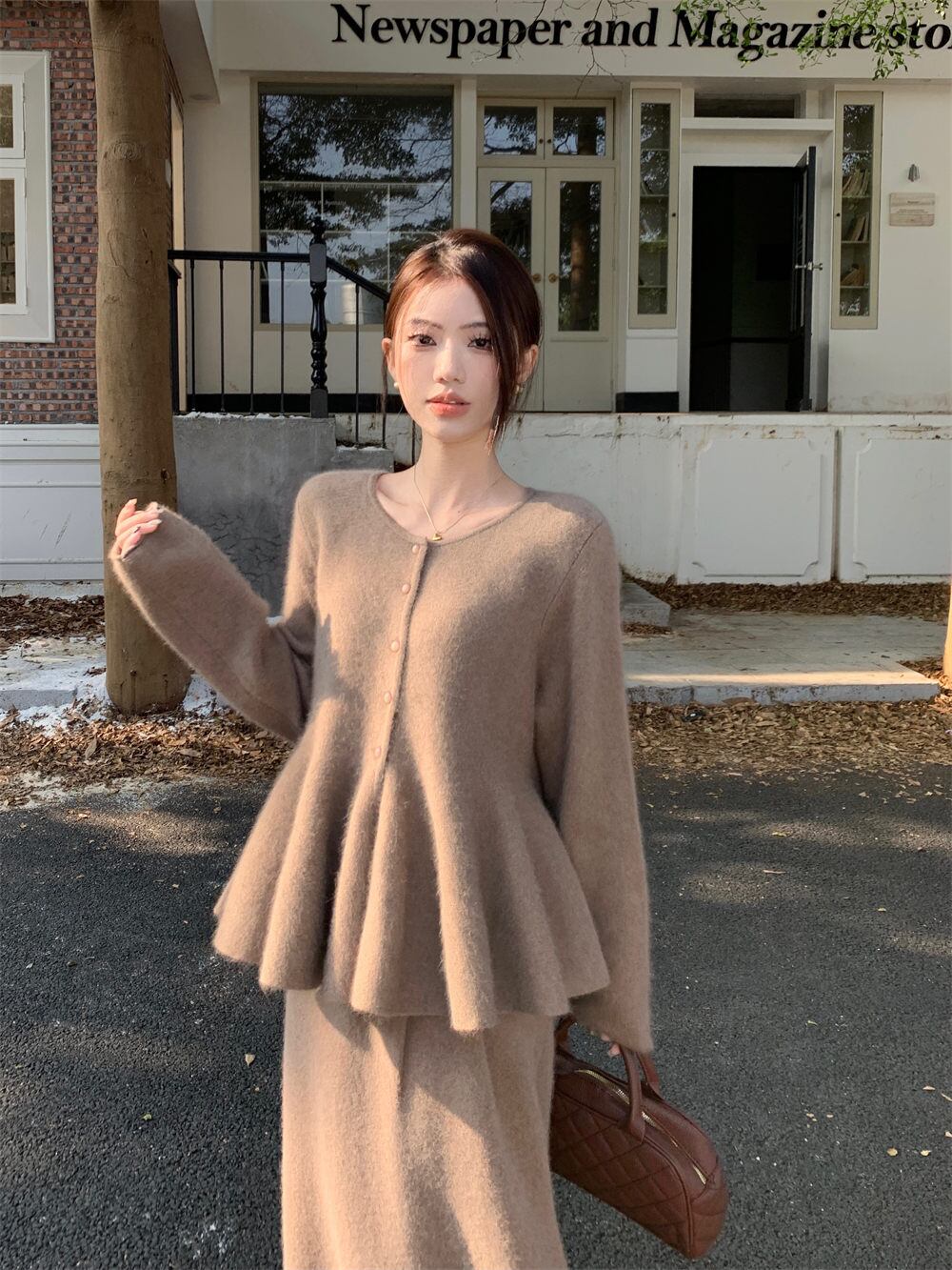2023秋INS新作★ニット カーディガン+セミロングスカート セット