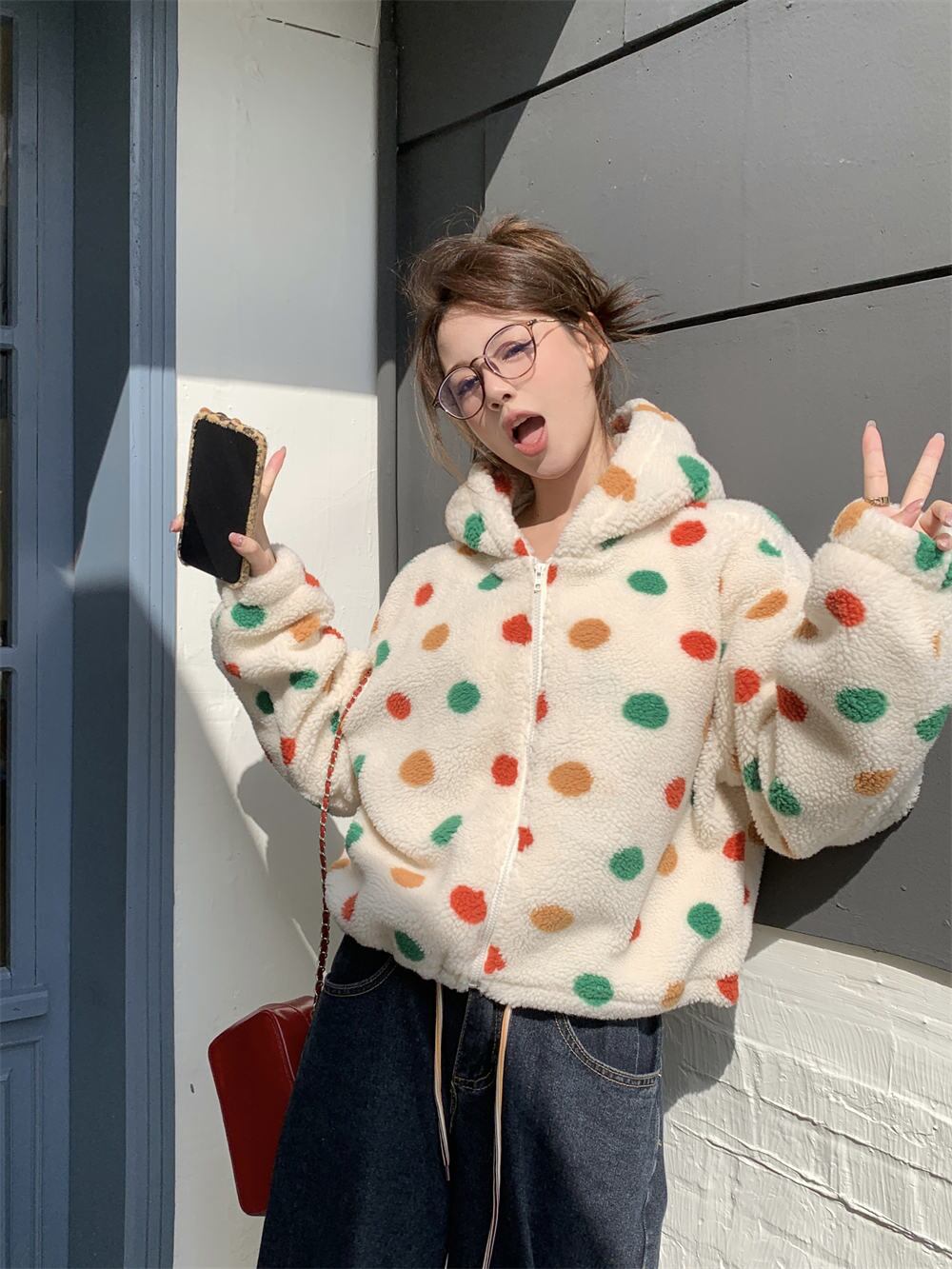 2023秋INS新作★韓国系 防寒 厚手 綿入れコート 可愛い 擬ラムウール