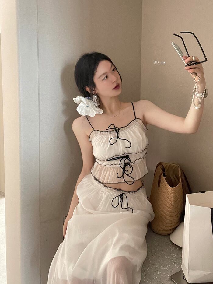 2025年INS 春夏新作 おしゃれ カジュアル系 気質 個性的 キャミソール+ハーフスカート