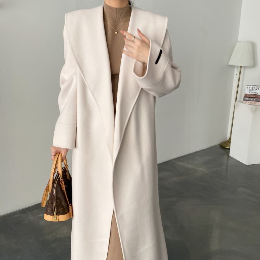 2025年INS 秋冬新作 気質 おしゃれ ルーズフィット スリット ガーゼ素材 コットンコート
