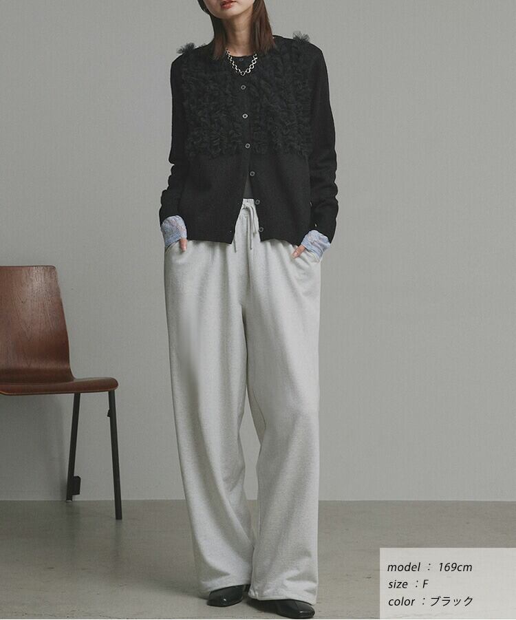 今季マストバイ 気質 おしゃれ ニット ネットレースフリル カーディガン