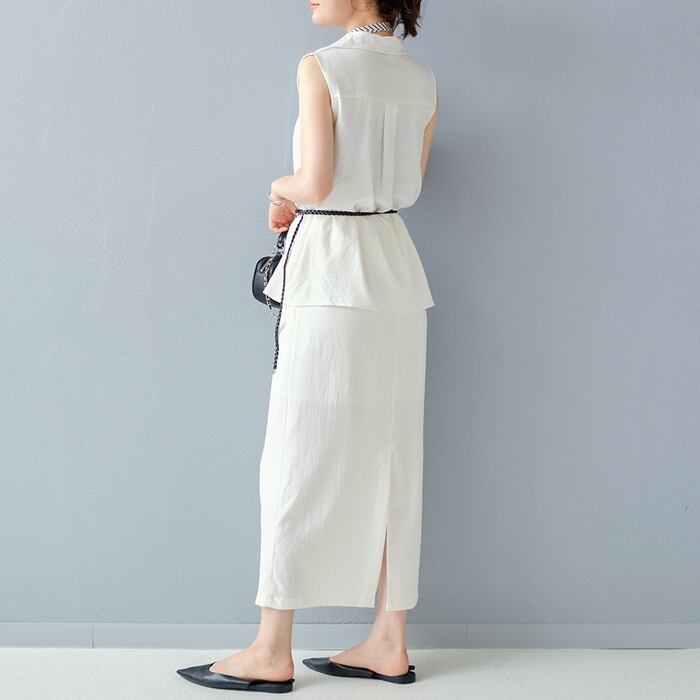 【2025新作商品♪】4点セットVネックノースリトップス×ロングスカート