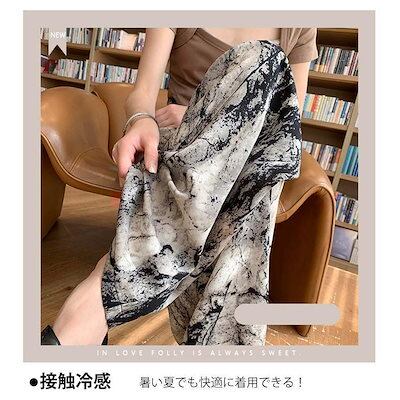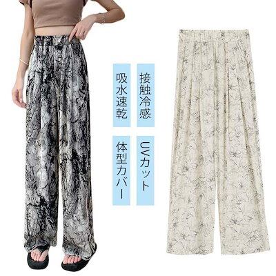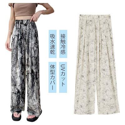 ワイドパンツ タイダイ柄 植物柄 長ズボン ロングパンツ 春 夏 ワイド ガウチョ 柄パンツ 薄手 ズボン 美脚 UVカット 花柄 ボトムス レディー