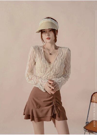 ビキニ水着セットアップレース長袖ラッシュガードレディース温泉スイミングウェア韓国ファッション体型カ