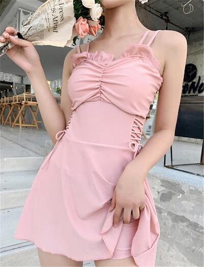 水着 レディース 腹を覆う スリム 保守的 水着 韓国 温泉 セクシー 小さな胸 ギャザー みずぎ