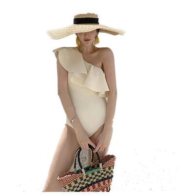 韓国の無地のビキニセクシーな大きな蓮の葉のサイドベリーは薄くて保守的なワンショルダー水着の女性
