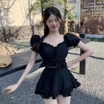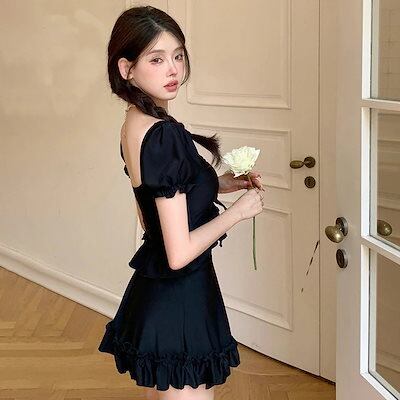 25 水着ファッション レディース 水着 ワンピース 水着ワンピース ? ? 2点セット ビキニ ? ? ママ水着 ? ? 黒 無地 シンプル セットアップ 旅行