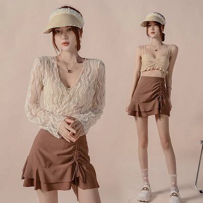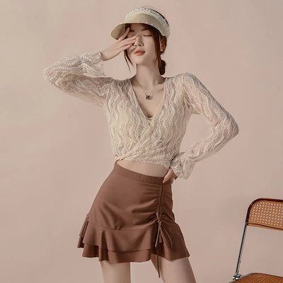 ビキニ水着セットアップレース長袖ラッシュガードレディース温泉スイミングウェア韓国ファッション体型カ