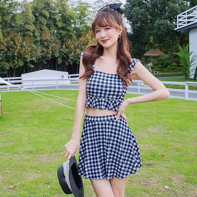 水着 レディース 2点セット ビキニ UVカット体型カバー着痩せ 韓国ファッション可愛い ゆったり