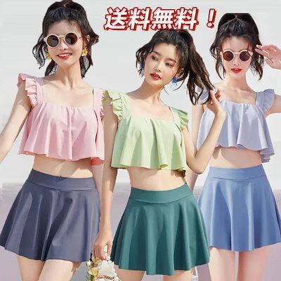 水着 レディース 2点セット ビキニ UVカット体型カバー着痩せ 韓国ファッション可愛い ゆったり中学生 高校生スポーツ スポーティー タンキニ ラッシュガード ワンピース 大きいサイズ