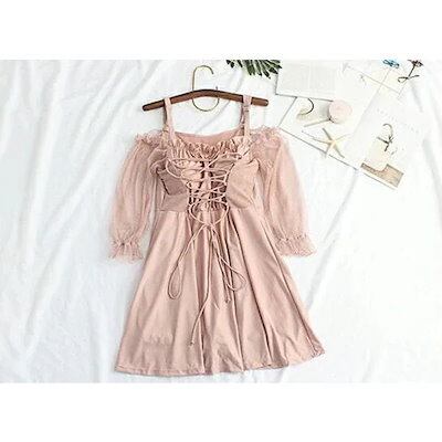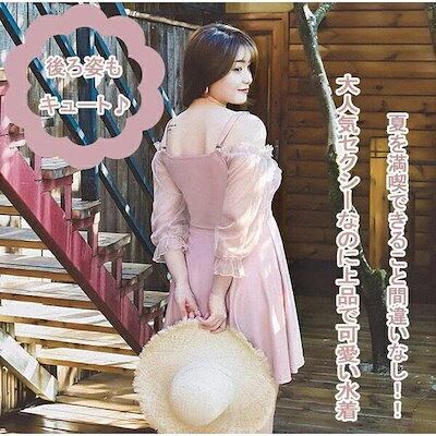 3L〜5L対応レディース 水着 ワンピース ぽっちゃり 体型カバー 韓国風 オトナ女子 袖あり フリル レースアップ 大きいサイズ ビーチ プール 海 透け感 日焼け防止 UVカット 可愛い 大人