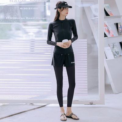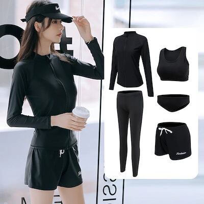 セットアップ 水着 レディース 体型カバー 上下セット 女性用 UVカット 長袖 スポーツウェア 水陸両用 フィットネスウェア 長袖ラッシュガード 五点セット ウェットスーツ サーフィン