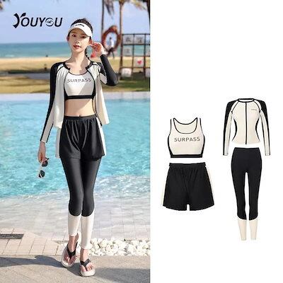 大きいサイズ レディース UVカット 韓国 ビキニ 水着 ラッシュガード水着 長袖 四点セット 水着 日焼け防止 着痩せ 水着 体型カバー 24新作 紫外線対策 水着セットアップ