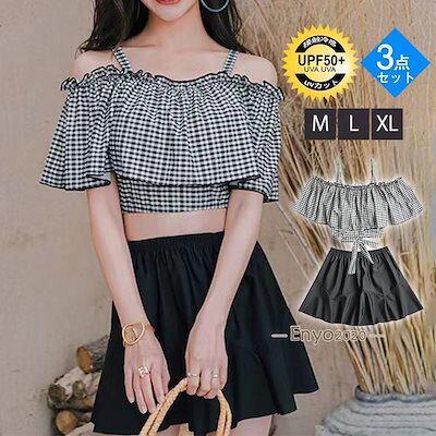 水着 レディース 3点セット セパレート 体型カバー パッド付き 中学生 高校生 UVカット 海水浴 潜水 海ビーチ 韓国風 可愛い 温泉
