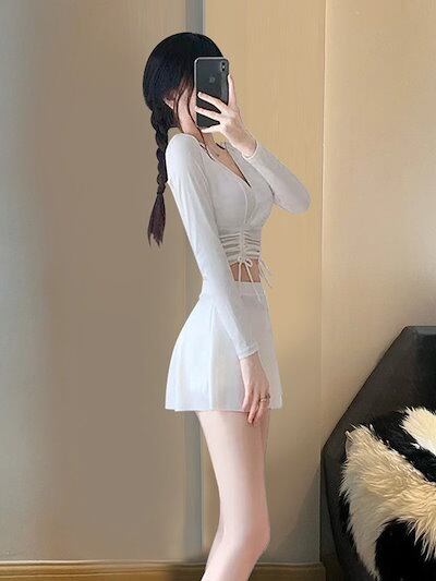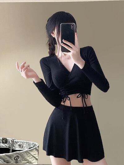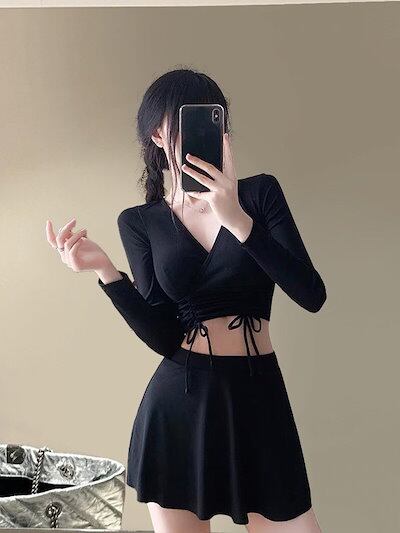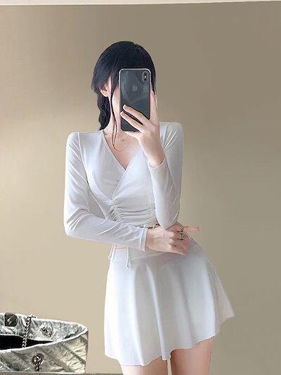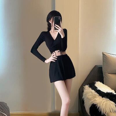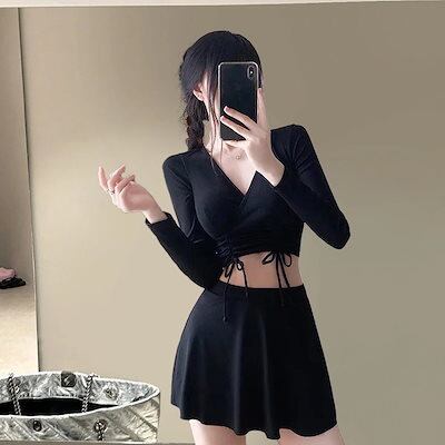 セパレート水着レディース2点セット無地ドレス型長袖UVカットスポーツブリーフ水着
