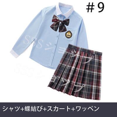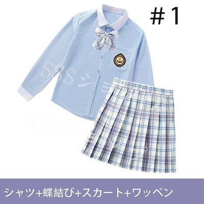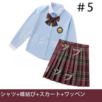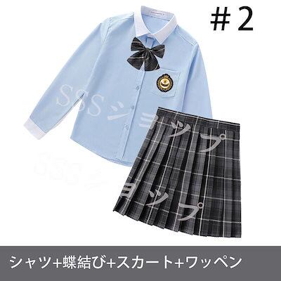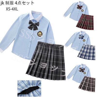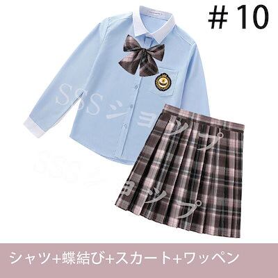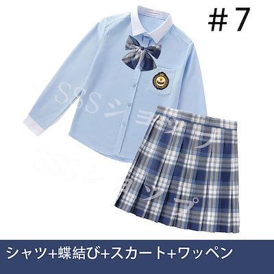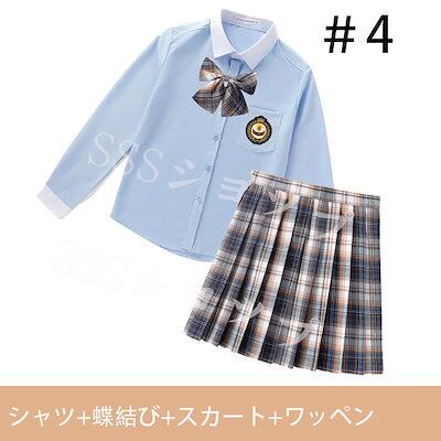心が踊る制服 女子高生 高校生 スカート長 袖シャツ 蝶結び ワッペン 4点セット JK コスプレ セーラー服 コスチューム コスプレ 衣装 学生 スクール ギャル ファッション レディース チエック