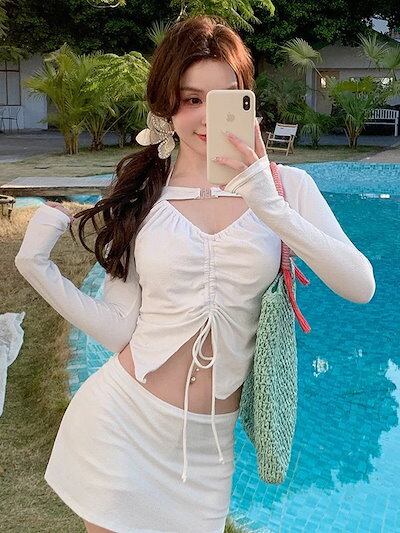 水着 体型カバー Swimwear 韓国インススタイルセクシー妖精スプリットスカート水着女性ビーチレジャー休日水着 韓国ファッション