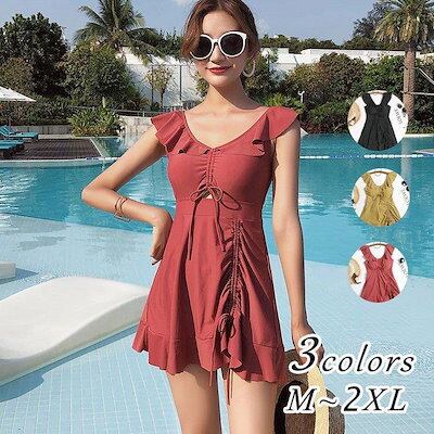 水着 レディース 体型カバー 水着 ワンピース型 サロペット 体型カバー フリル パッド付き 水着 韓国風 可愛い 40代 大きいサイズ スイムウェア 温泉 ママ0
