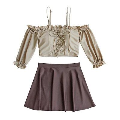 25 人気 水着 レディース ビキニ 3点セット 2way レース ハイウエスト フリル水着 水着 体型カバー スカート 女性 レディース