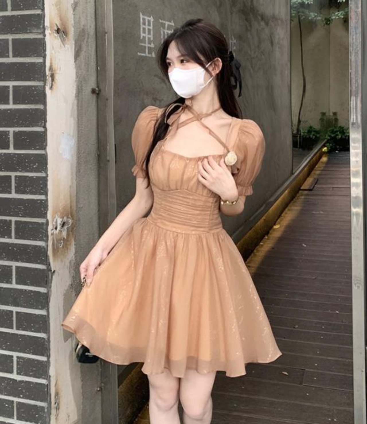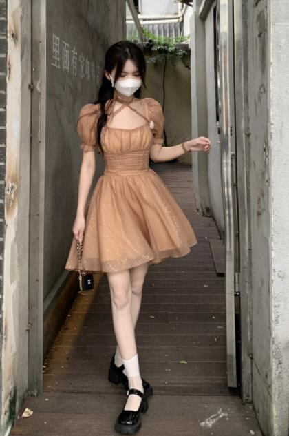 春夏新作 女 レディース ハイウエスト 半袖 ミニ ワンピース ドレス 台型スカート S/MEERMJNB3697019