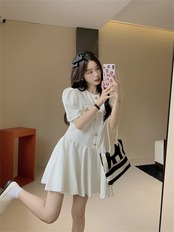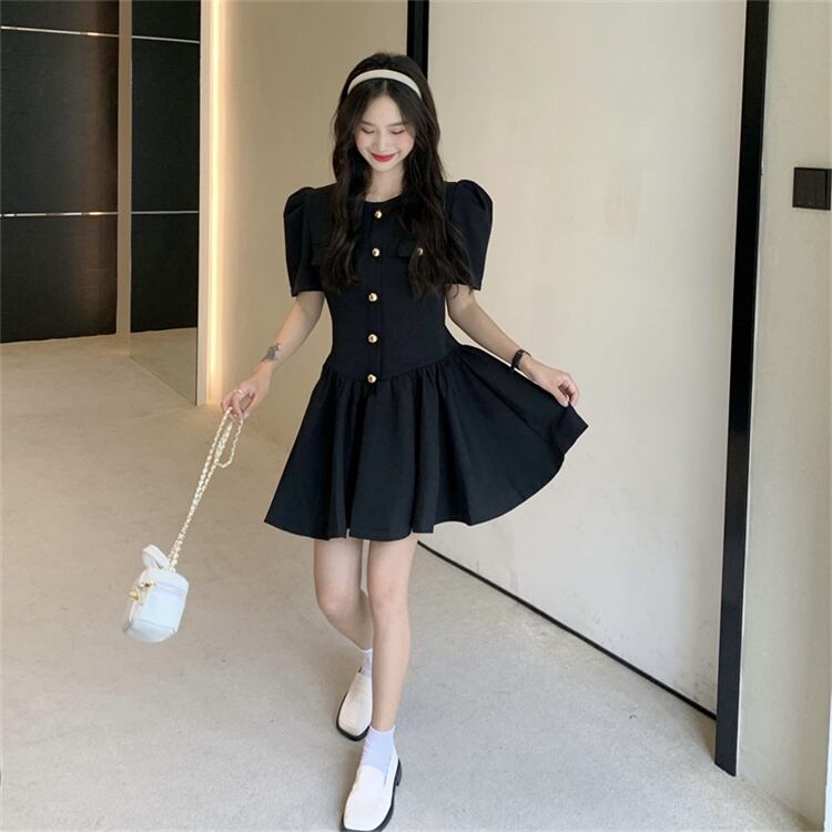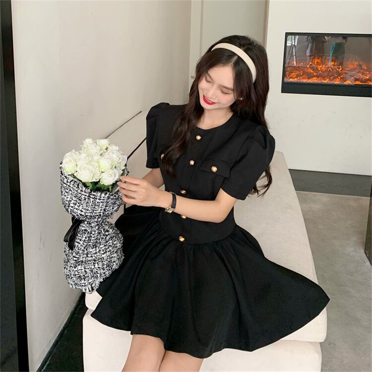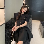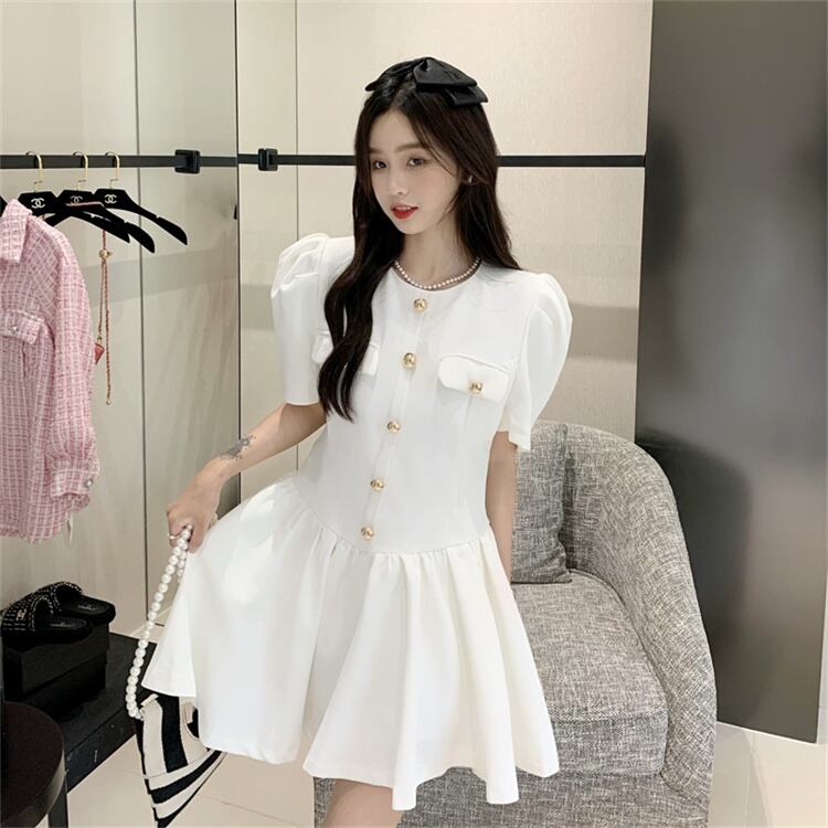 ハイエンド 気質 受け取って腰 半袖 夏 新品 ミニスカート ギャザリング ワンピース