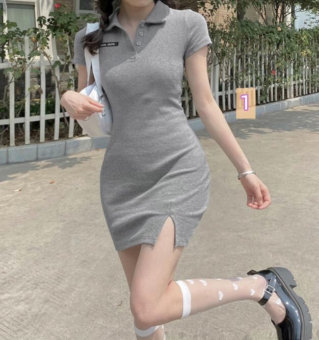 春夏新作 女 レディース ハイウエスト 半袖 ミニ ワンピース ドレス タイトスカート 2色 S-LEERMJNB3696990