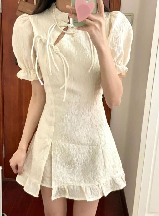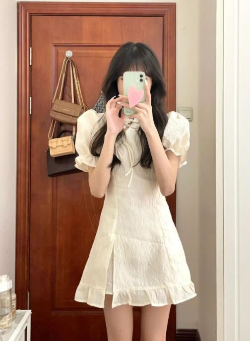 春夏新作 女 レディース ハイウエスト 半袖 ミニ ワンピース ドレス 台型スカート S-LEERMJNB3697025