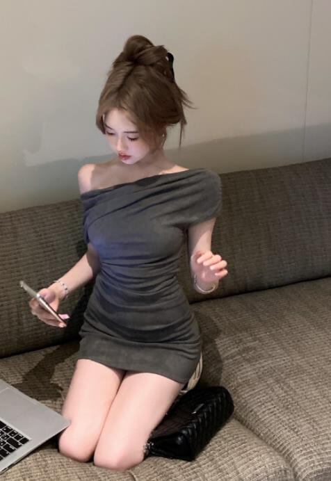 春夏新作 女 レディース ハイウエスト 半袖 ミニ ワンピース ドレス タイトスカート S/M HH66369