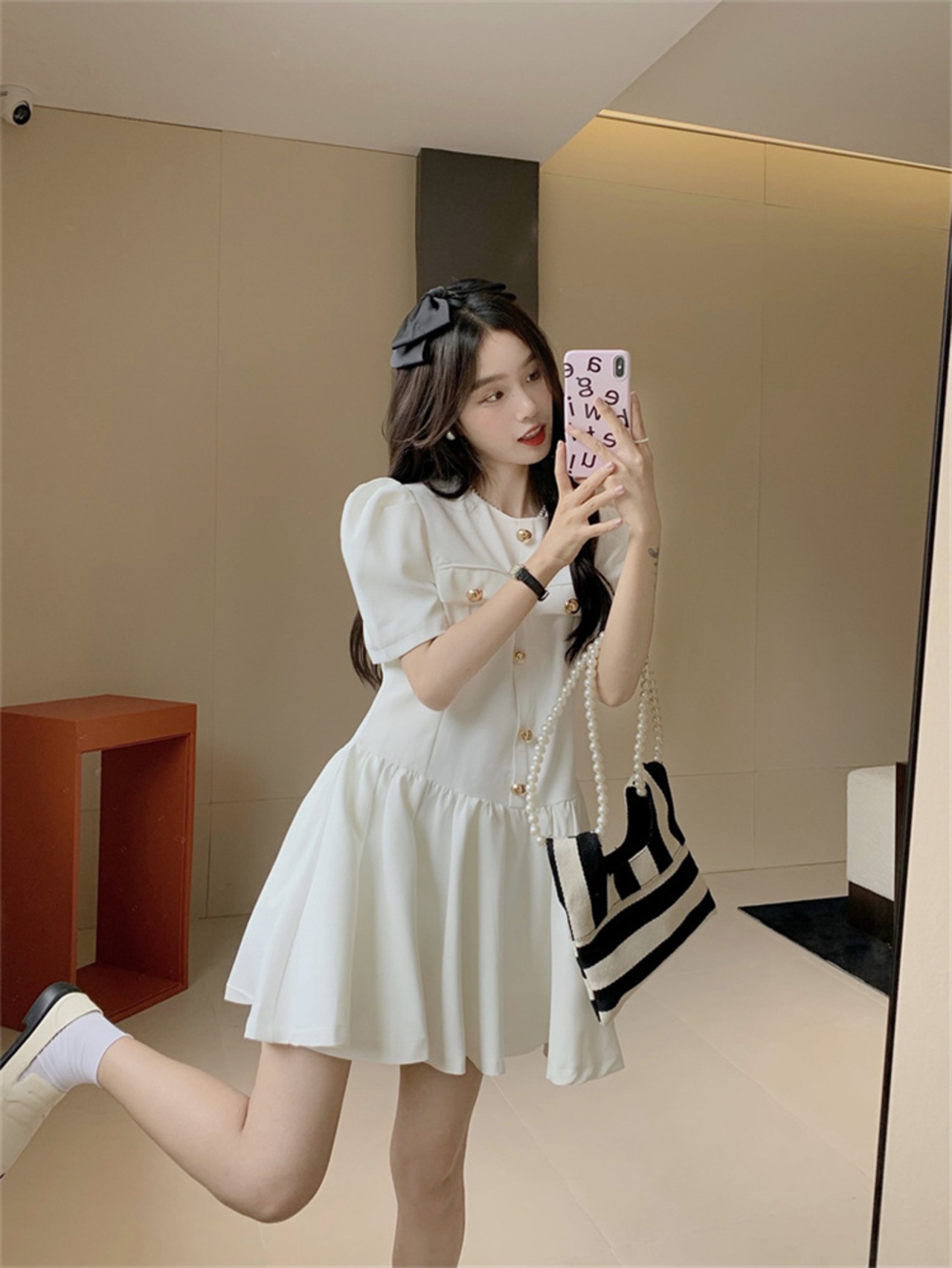 ハイエンド 気質 受け取って腰 半袖 夏 新品 ミニスカート ギャザリング ワンピース