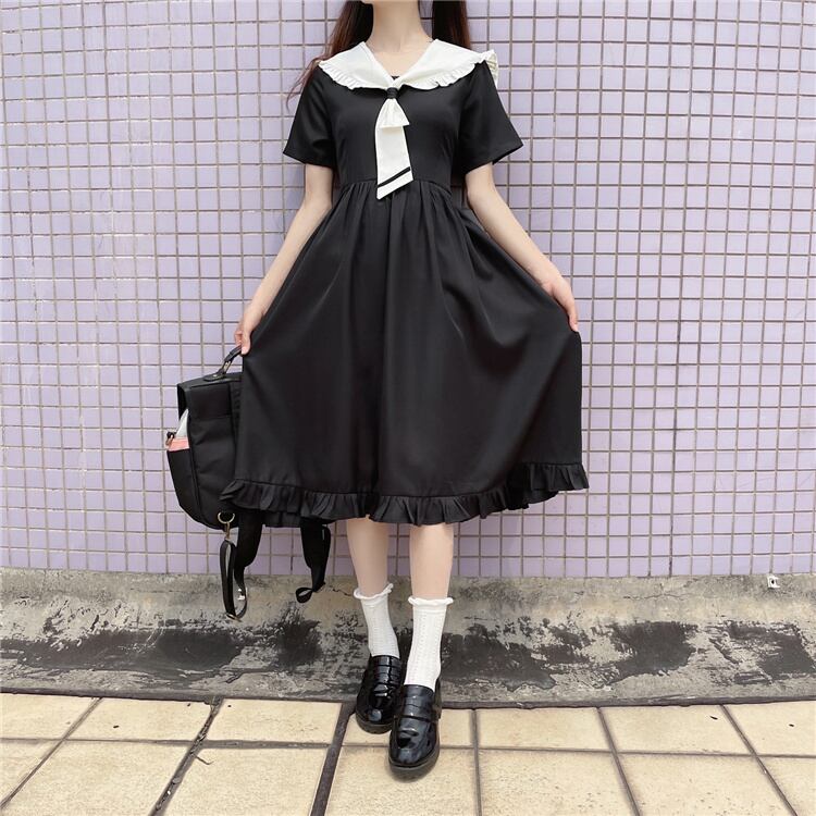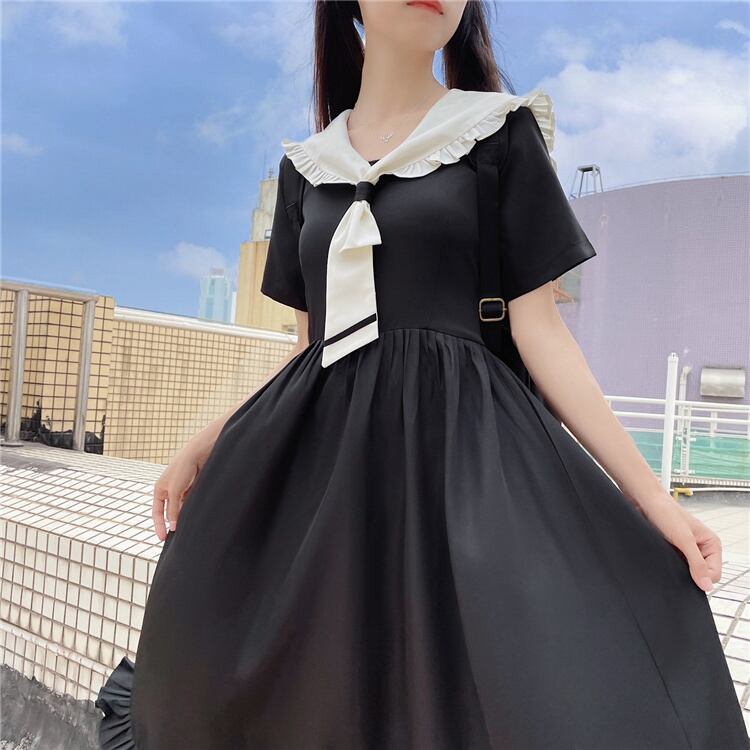 INSスタイル ネクタイ ワンピース スリム 可愛い 縫付 ロングスカート 半袖