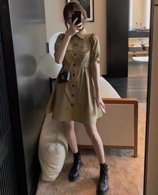 春夏新作 女 レディース ハイウエスト 半袖 ミニ ワンピース ドレス 台型スカート S-XLYUIKJMP26398026