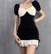 春夏新作 女 レディース ハイウエスト 半袖 ミニ ワンピース ドレス タイトスカート S-LYUIKJMP26398040