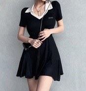 春夏新作 女 レディース ハイウエスト 半袖 ミニ ワンピース ドレス 台型スカート S-LYUIKJMP26398048
