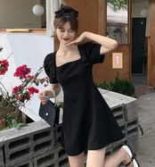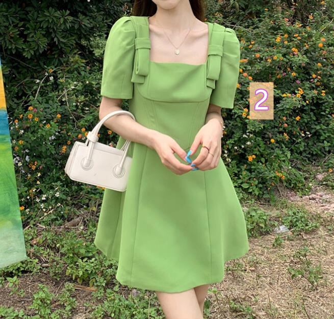 春夏新作 女 レディース ハイウエスト 半袖 無地 ミニ ワンピース ドレス 台型スカート S-LGYTRMZ369851024