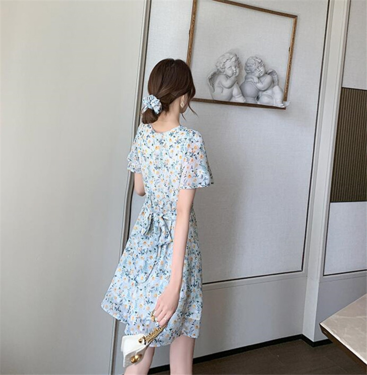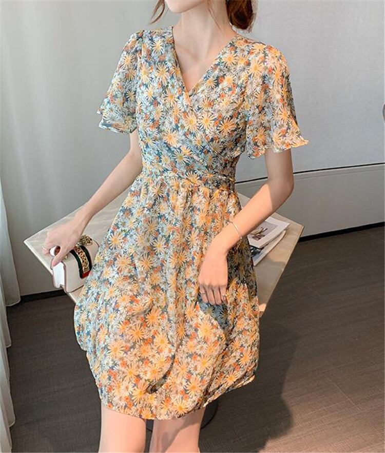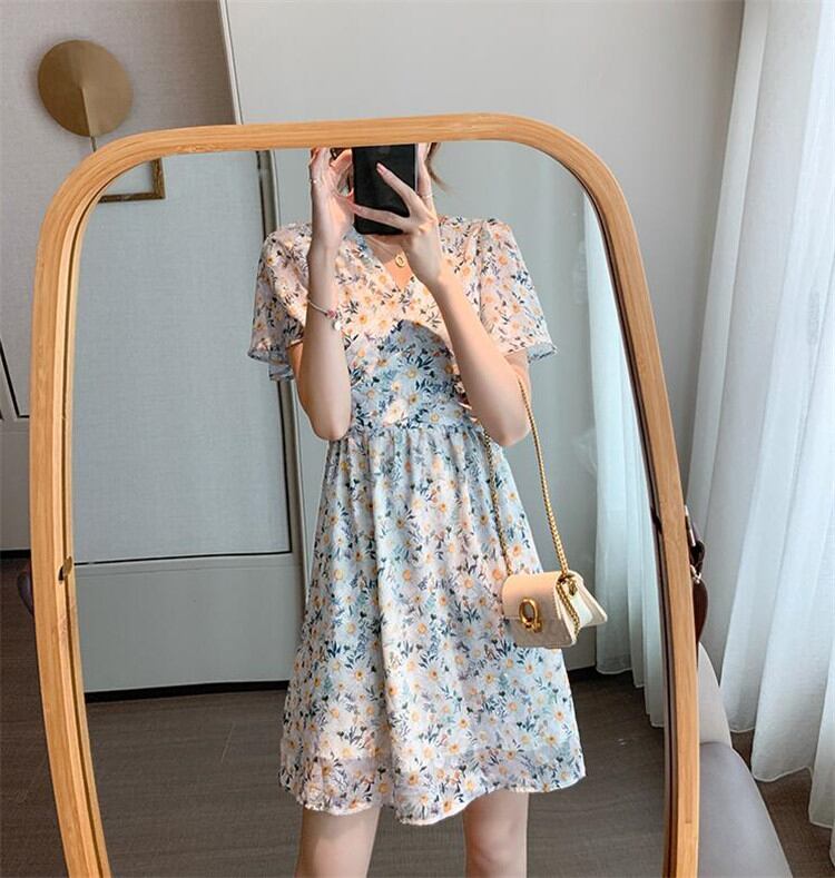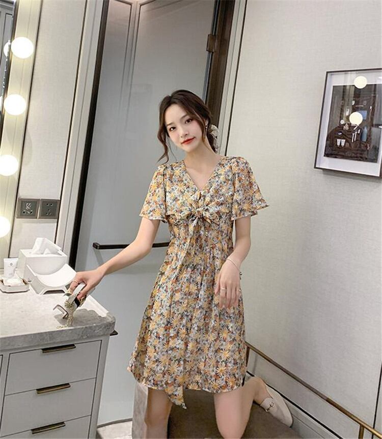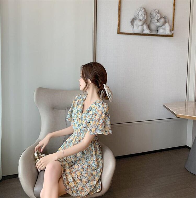 韓国ファッション 2020年新作 INSスタイル Vネック 半袖 シフォン 百掛け ハイウエスト 夏